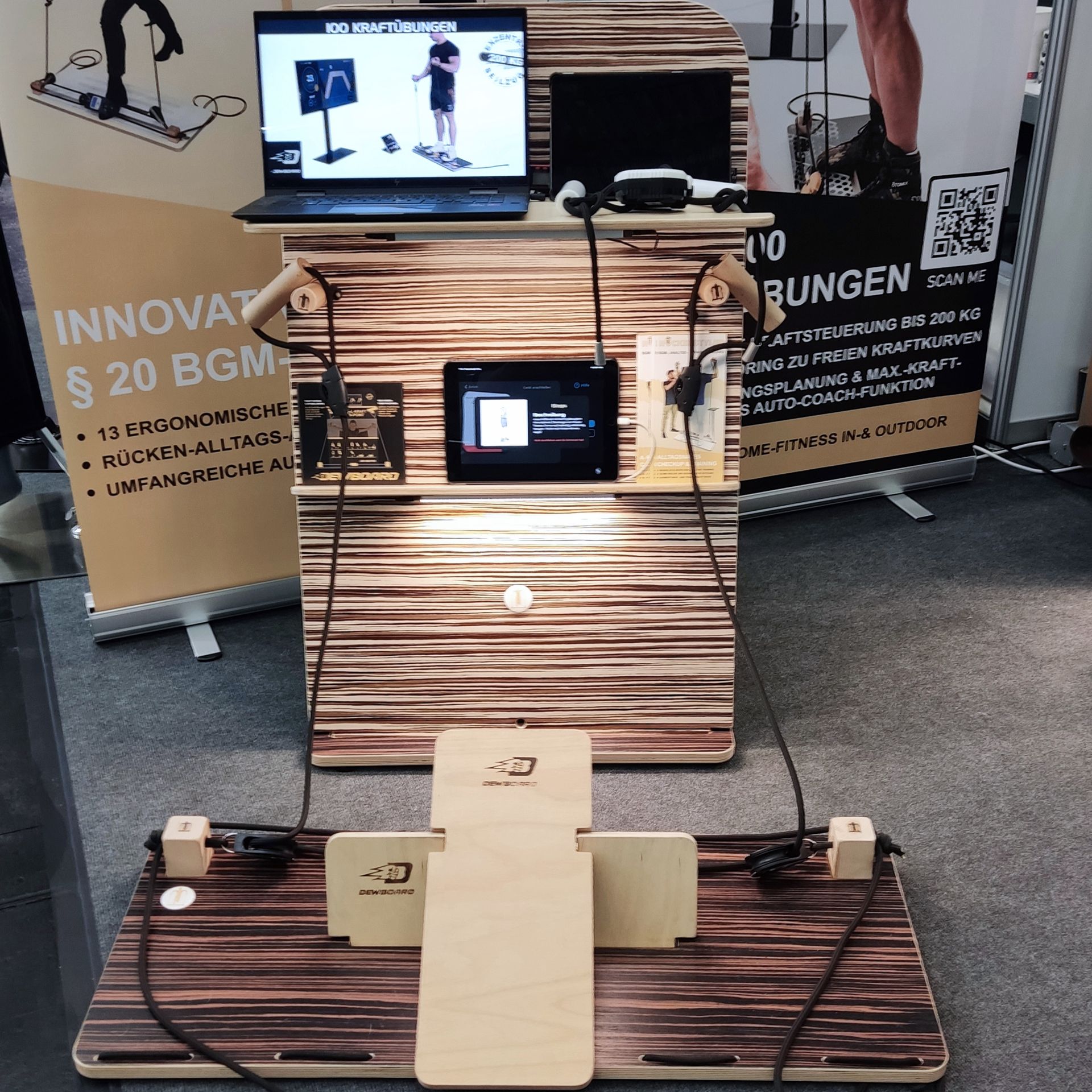 - Rückenstyler Analyseboard mit zwei getrennten Messeinheiten (1 x analog und 1 x Bluetooth) und Seilzügen für den automatischen Rechts-links-Muskelvergleich